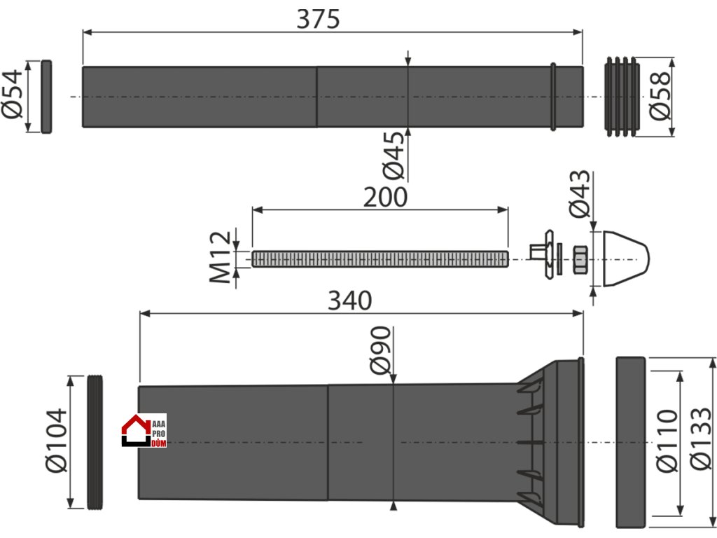 - Pro napojení vody a odpadu pro závěsné WC, prodloužené