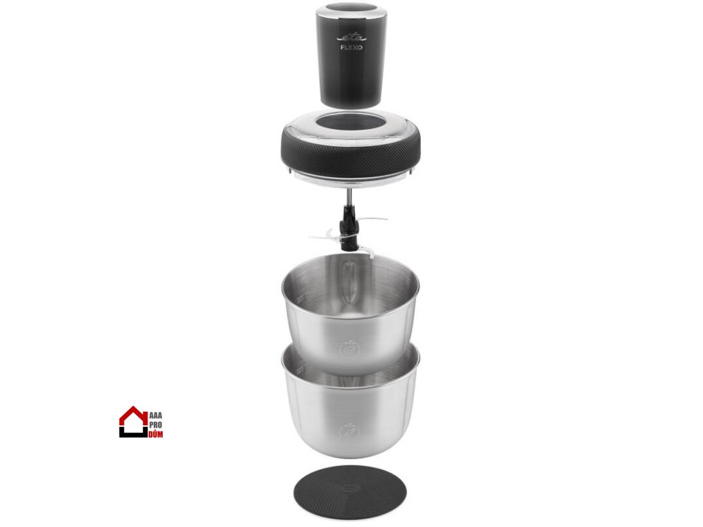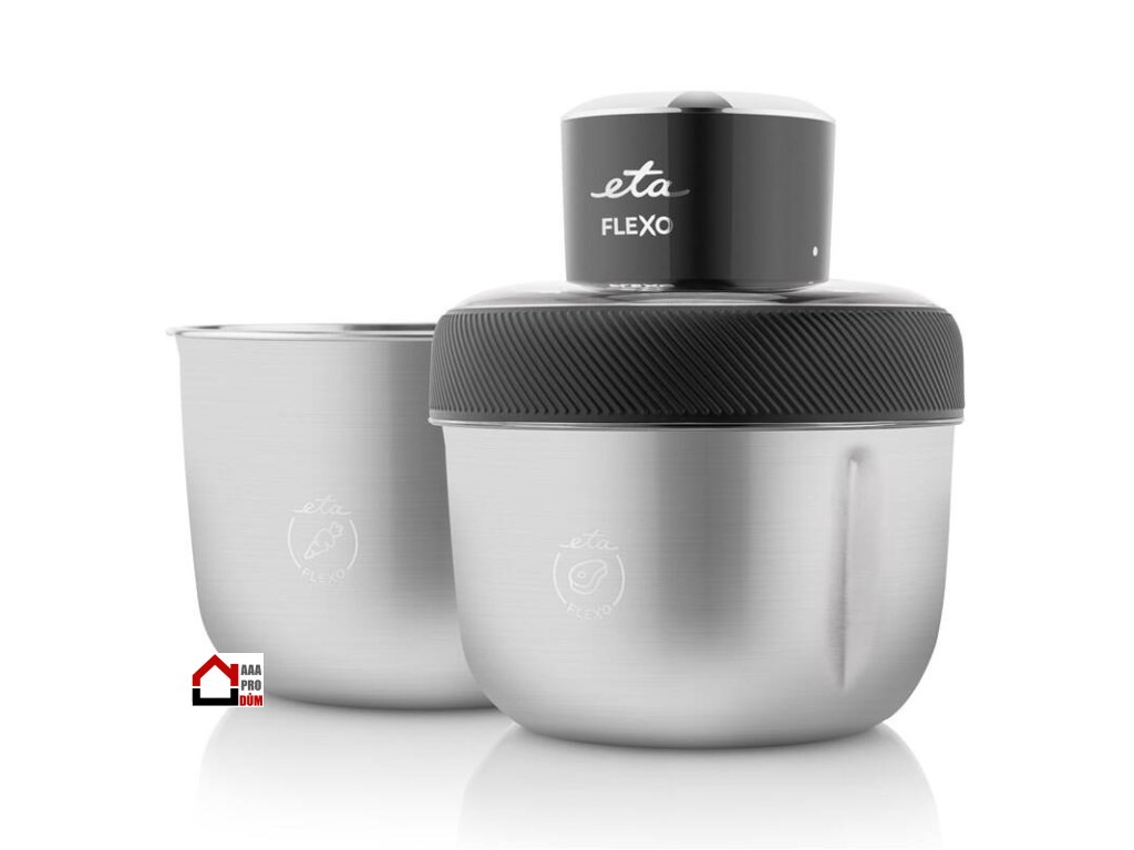 Univerzální sekáček potravin ETA Flexo 4079 90000 dokonale naseká, rozmixuje, rozdrtí suroviny i připraví pyré, a to pomocí jediného dotyku. Díky odolnému, kvalitnímu nerezovému čtyřramennému noži zpracuje potraviny během pár sekund.