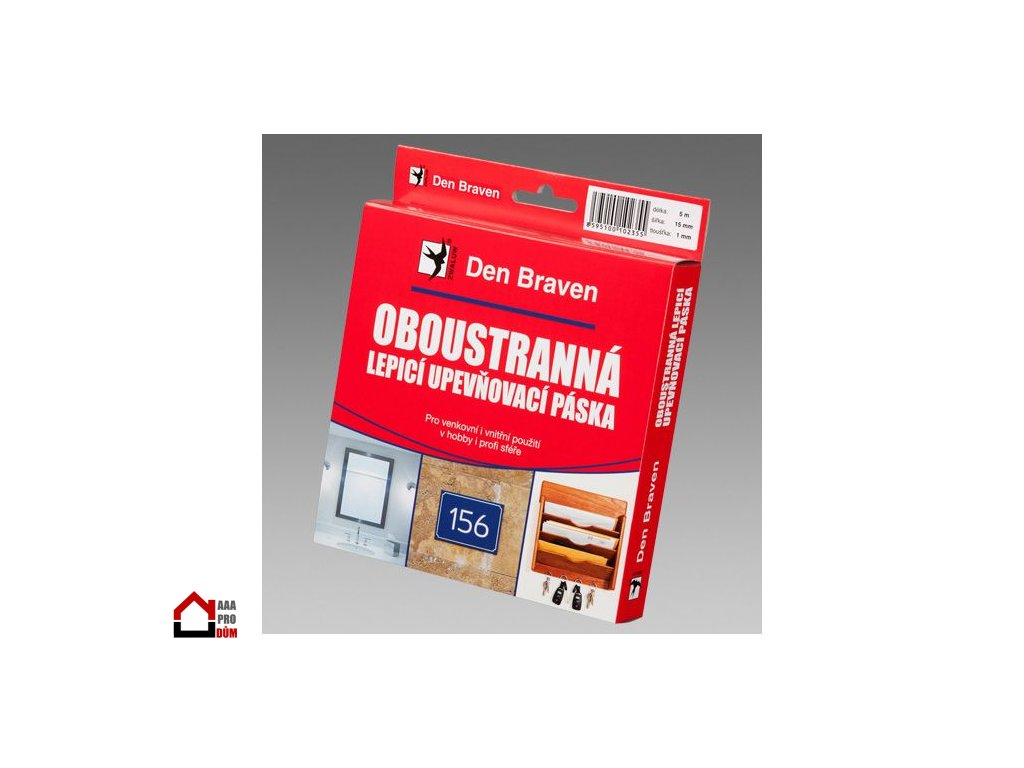 Pro mnohostranné upevňovací práce v domácnosti i v profi sféře. Ideální pro upevňování výstražných a informativních cedulí a dekorativních předmětů. Okamžité upevňování firemních tabulí na prezentacích, výstavách a veletrzích. Fixace lepených předmětů při montážích jako lepení zrcadlových stěn, menších zrcadel do skříní a koupelen apod. Vysokou lepivost a přilnavost k podkladu obstarává speciální oboustranný nános kaučukového lepidla na pěnové PE pásce. Hobby balení v krabičce.