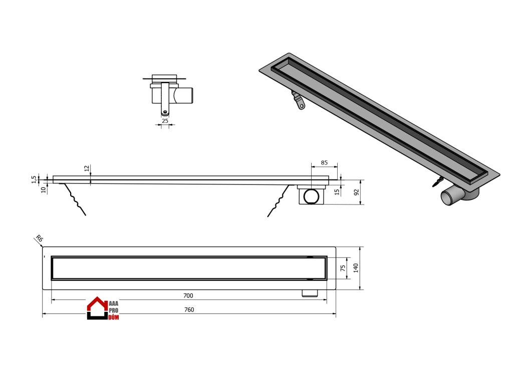 - Vnitřní rozměr roštu pro dlažbu 684x62x12 mm